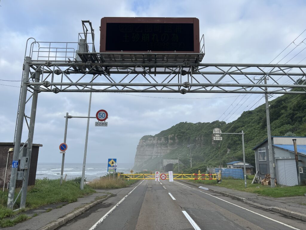 落石のため通行止め。国道229号はあっさり僕を通してはくれなかった。